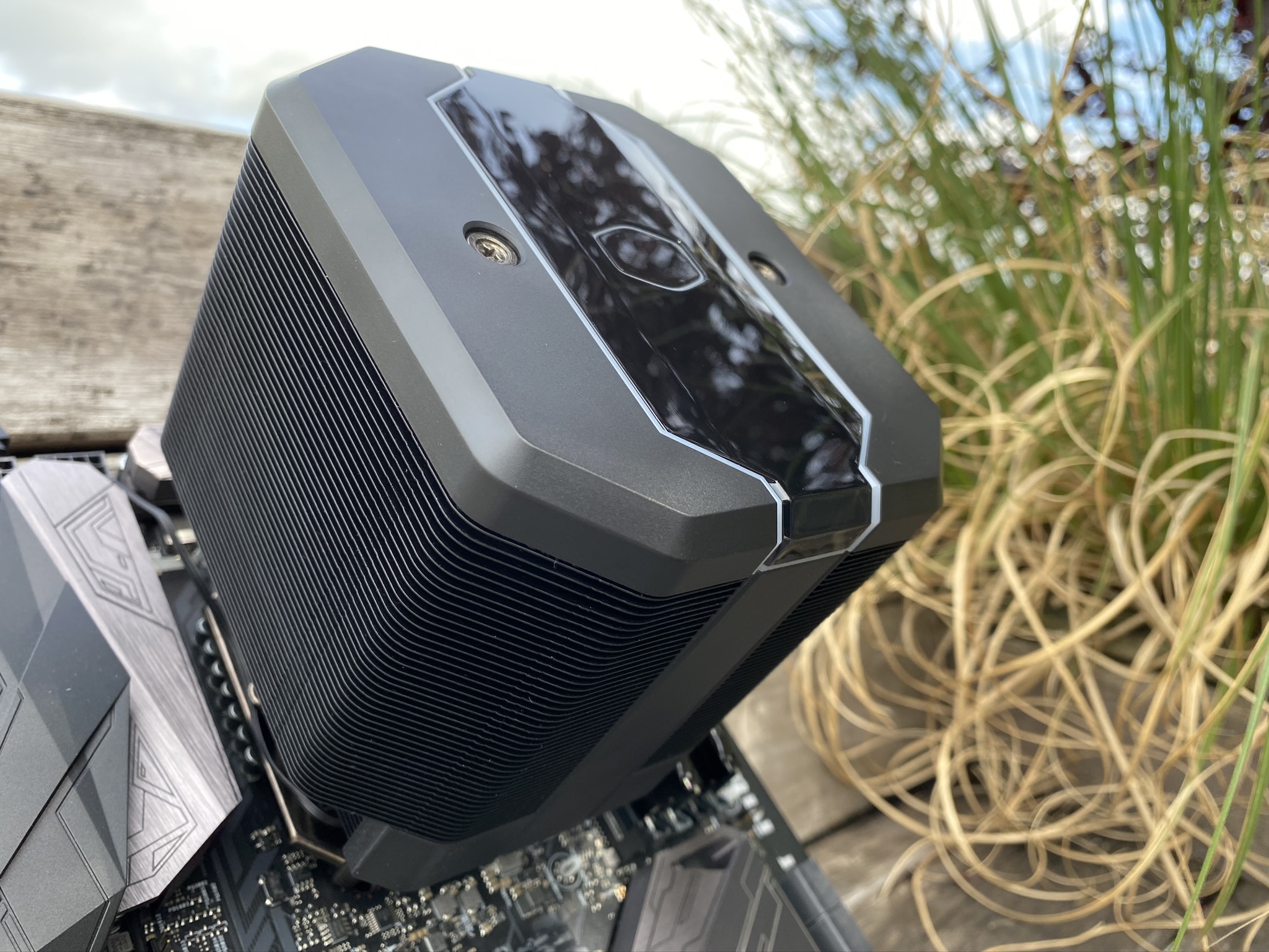 In het hoofdstuk de specificaties had ik het over de visie van de MA620M. Hands-on voelt de CPU-koeler als een deftig stukje ontwerp. Het roept niet zozeer Noctua NH-D15 gevoelens op, wel weet de MA620M goed van differentiëren. Dit deed Cooler Master lang geleden al met de V6, V8 en V10 CPU-koelers. Vooral de V10 vond ik destijds een geweldige ‘wow-factor’ hebben. Het differentiëren zit hem vooral in het inbouwen van de 120mm fan tussen twee koeltorens en optisch vrijwel niet zichtbaar. De MA620M doet mij net als de ‘V CPU-koelers’ denken aan een automotor, alles zit op zijn plek onder één motorkap. Verschil met de MA620M en verouderde ‘V CPU-koelers’ is dat deze goed bij de tijd is met zijn ARGB opties.