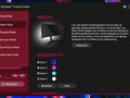 Rechts van de navigeerjoystick is er een scrollwiel waarmee je de RGB LED verlichting achteraan het scherm kan aanpassen. Lang drukken activeert de LED verlichting. Scrollen past de helderheid aan. Kort drukken toont de verschillende lichtmodi die je kan selecteren door het scrollwiel te scrollen en dan nog eens kort te drukken. Hierbij heb je de keuze uit vier statische kleuren: paars, roze, lichtblauw en wit. Daarnaast heb je nog twee full RGB modi’s: Peaceful en Dynamic. Peaceful gaat langzaam door alle kleuren heen en Dynamic roteert alle kleuren snel in het rond voor de echte #PCMasterRaceRGB vibes. De laatste lichtmodus is Video Sync Modus. Dit is een modus die je enkel kan activeren door het scherm met de bijgevoegde USB-kabel aan te sluiten. In deze modus geven de LEDs op de achterkant dezelfde kleuren als de content die op de randen van je scherm getoont worden. Je kan het vergelijken met de Ambilight van Philips die je misschien wel bekender in de oren klinkt. Ik heb deze modus niet uitgebreid getest maar in de korte tijd dat ik deze aan had merkte ik op dat er een kleine vertraging zat op de LEDs tegenover wat er op het scherm getoont werd. Ik had ook de indruk dat de LEDs in deze modus flikkerde, er was geen vloeiende overgang van de verschillende kleuren waardoor de verlichting erg onrustig was. Dit is het enige wat ik minder vond aan het LED systeem van dit scherm. Je kan de LEDs ook erg fel zetten. Ik heb de LEDs meestal gewoon op wit ingesteld op 50% helderheid, in deze modus was het scherm minder fel voor mijn ogen wanneer het donker was in de kamer. Dus voor elk wat wils. Heb je liever geen LED verlichting dan kan je deze natuurlijk gewoon afzetten.
