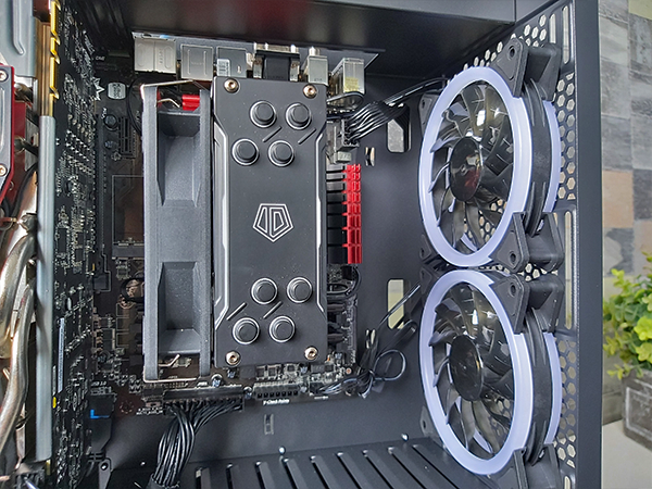Wat in ieder geval opvalt, is dat er effectief gezien meer ruimte overblijft voor kabelmanagement. Daarnaast brengt de gedraaide lay-out een ander voordeel met zich mee: geen verzakking van de videokaart op lange termijn door het gewicht daarvan. Daarnaast vind ik de setup gewoonweg tof ogen, want zo kan je de videokaart ook nog als pronkstuk presenteren, zonder te hoeven investeren in een riser cable.