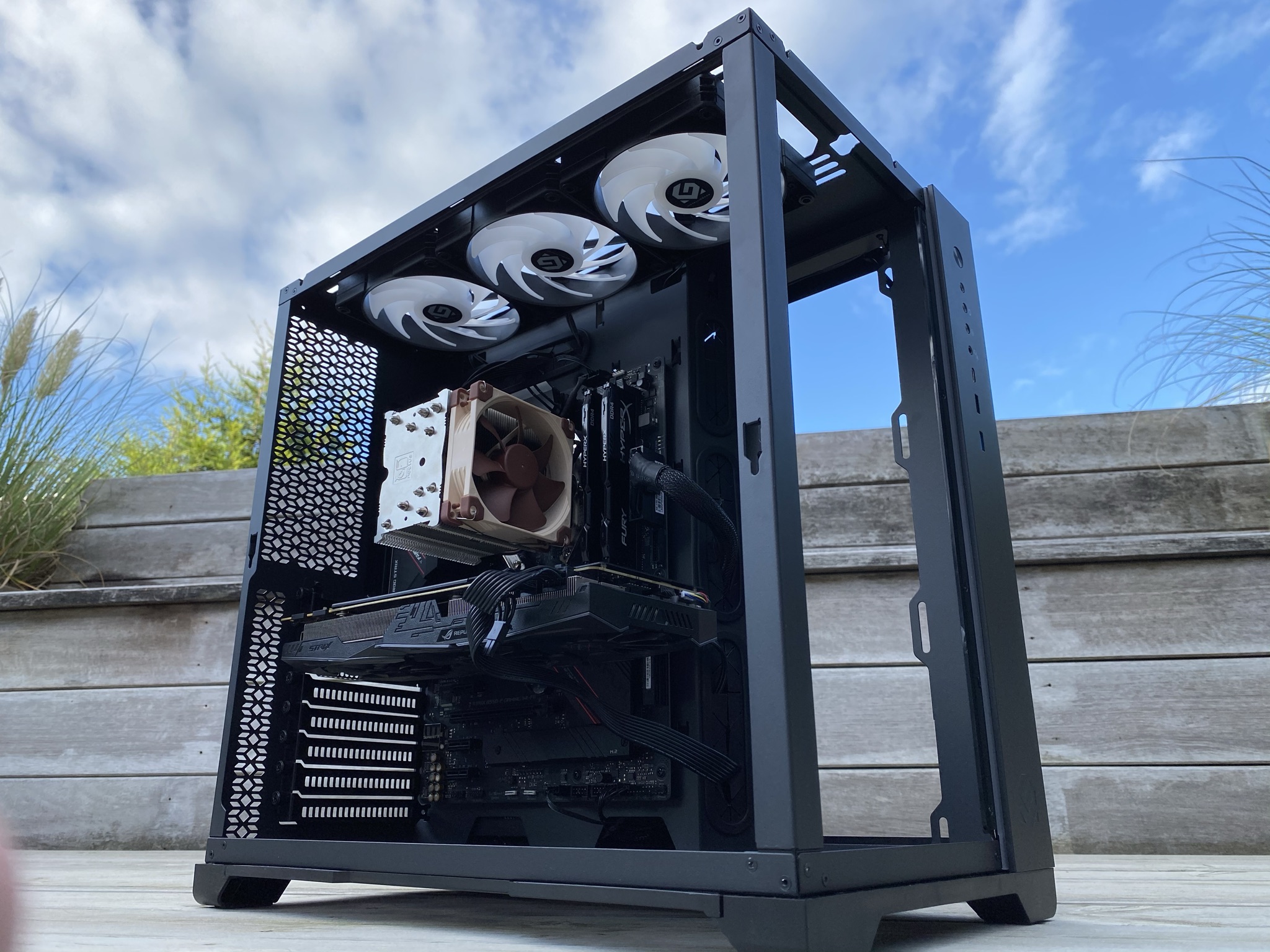 Het eindresultaat mag mooi zijn. Persoonlijke wijzigingen zouden een AIO-set (waterkoeler) zijn, want een mooie 360mm-radiator met ARGB-fans zou de Neo Qube niet misstaan. Met deze behuizing wil je voor het beste resultaat minimaal zes fans hebben; drie onder (intake) en drie boven (outtake). De voorzijde is een esthetisch overweging, in de zin van: volledig opgetrokken met gehard glas. Echter is hier geen sprake van intake voor airflow. Met de in- en outtake is een schoorsteeneffect de beste oplossing.