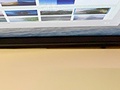Het scherm is gebogen, met een kromming van 1500R. Dit betekent dat de kromming een cirkel met een radius van 150 cm zou vormen als je hem 360 graden zou doortrekken. Wat opvalt is dat de kromming vooral in het midden zit. Als je het scherm horizontaal op zou delen in drie stukken zijn het linker- en rechtergedeelte vrijwel plat, terwijl de kromming in het midden zit. In de praktijk niet storend maar wel het vermelden waard. Ik heb in onderstaande foto’s geprobeerd het verschil te laten zien. Let ook op de weerspiegeling van de map in het scherm.
