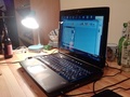 Twee dagen later had ik de laptop binnen (één werkdag, aangezien ik de laptop pas 's avonds had besteld). De doos bevatte een handleiding (zowel in Engels als Nederlands), een 6-cel accu, een 120 Watt AC adapter plus stekker, een ExpressGate handleiding (heb ik mij verder nog niet in verdiept), een cd met drivers en tenslotte de laptop zelf.