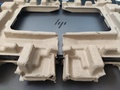 En fijn: nauwelijks plastic en totaal geen piepschuim. De laptop wordt beschermd door een soort eierdoos-kartonnen houders.