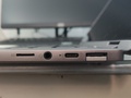 Handig; de lader kan zowel links als rechts aangesloten worden. Rechts is verder aanwezig: een soort uitklapbare USB-B, een USB-C, mini-jack en SD-slot.