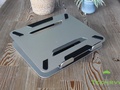 De Xidu PhilStand-Max Ergonomic is gemaakt van alluminuim en weegt 2 kilo. Hij voelt stevig aan en de schanieren gaan stroef (je moet veel kracht zetten om ze in een andere positie te zetten). Normaal is dat geen goed punt, maar omdat de Xidu PhilStand-Max Ergonomic een laptop moet houden en niet moet doorbuigen is het nu een goed punt. Verder zit er op het vlak waar je je laptop zet nog een opening. Deze is erin gemaakt zodat je laptop koeling kan krijgen en dat dit niet geblokkeerd wordt. Handig!