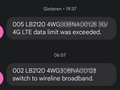 Je kan je verbruik zien in de interface. Let op! Al heb je de begrenzing aanstaan van je 'Plan Limit' je verbruik blijft gewoon doorgaan. Je ontvangt enkel dus een sms als je dat aanvinkt. Het is dus niet zoals je Android telefoon dat je data verbinding stopt. Voor mij ziet er nu zo uit.