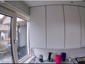 De wide-angle lens heeft redelijk wat fish-eye effect, zoals je in de screenshot kan zien. Alle kastdeurtjes in onze keuken zijn natuurlijk recht, maar op het beeld lopen ze allemaal krom. Als je helemaal links kijkt zie je het heel sterk.