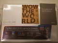 - Unboxing: De laptop zit in een doos zonder veel opsmuk, behalve een zakje met stickers waarvan het doel me echt volledig ontgaat. Ik vermoed dat 90% van de kopers, als het niet meer is, de stickers direct bij het afval deponeren. Zonde, ASUS.