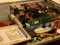 Het wegwerken van kabels was een drama. De kast is natuurlijk krap, zeker onder de Slimline, en er is geen rekening gehouden met cable management. De voedingskabel is daarbij ook nog eens vrij lang waardoor het bijna onmogelijk is deze onder de Slimline weg te werken. Vandaar dat ik ervoor gekozen heb de montage slee voor de Slimline niet terug te monteren.