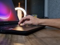 Ik ben geen fan van de dikte van de laptop. Ik begrijp dat dit nodig is om de juiste koeling te plaatsen voor de componenten, tenslotte is het een gaming laptop en draait het om prestaties. Echter gebruik ik zelf een Surface Book 2 voor mijn werk en studie en aangezien ik veel type vind ik het toch fijner als mijn polsen dichter bij de tafel liggen voor ondersteuning. Ook had ik liever geen numpad en meer een gecentreerd toetsenbord en mousepad gezien. Ik vond het typen hierdoor niet zo prettig als op mijn eigen laptop.