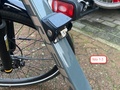 De aan de linkerkant van het stuur zittende display is de veel gebruikte eenvoudige Bosch Purion. Deze is helaas niet afneembaar wat mijns inziens in het kader van diefstal preventie een nuttige toevoeging zou kunnen zijn. Hij heeft een helder schermpje en makkelijk te bedienen, zelfs met handschoenen aan. De 4 ondersteuningsstanden (turbo-sport-tour en eco) die je in kunt stellen door op + of – te drukken werken prima. Heeft tevens een loop-assistentieknop aan de onderkant van het schermpje die je bijvoorbeeld kunt gebruiken als je lopend een heuvel op gaat. De fiets gaat dan vooruit zonder dat je aan de trappers komt. Door de min-knop ietsje langer ingedrukt te houden kom je in een keuzemenu waarbij 3 gegevens zichtbaar kunnen worden gemaakt, te weten de dag-afstand, totaal gefietste afstand en de range per ondersteuning-stand. De verlichting kan worden in- of uitgeschakeld door de plusknop iets langer ingedrukt te houden.