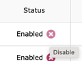 Hier kan je dan op drukken en dan wordt de status Disabled met een groen bolletje en een vinkje.