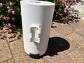 De unit heeft nu meerdere dagen buitengestaan en heeft al een Nederlandse bui overleeft. De unit stond dan op ongeveer 1.5 meter vanaf de grond en stond op een plek waar deze onder geregend kon worden. De unit doet het nog steeds. De waterdichtheid lijkt mij dan ook prima in orde. Het op de juiste manier erin doen van de kabels om deze waterdichtheid te waarborgen, vergt dan wel wat geduld. Eerst moet het rubberen 'schuifje' eraf en vervolgens moet de wat stugge stroomkabel in de sleuf worden geduwd. Daarna weer onderuit het grote, zwarte, rubberen flapje. (Ik hoop dat het allemaal nog duidelijk is).