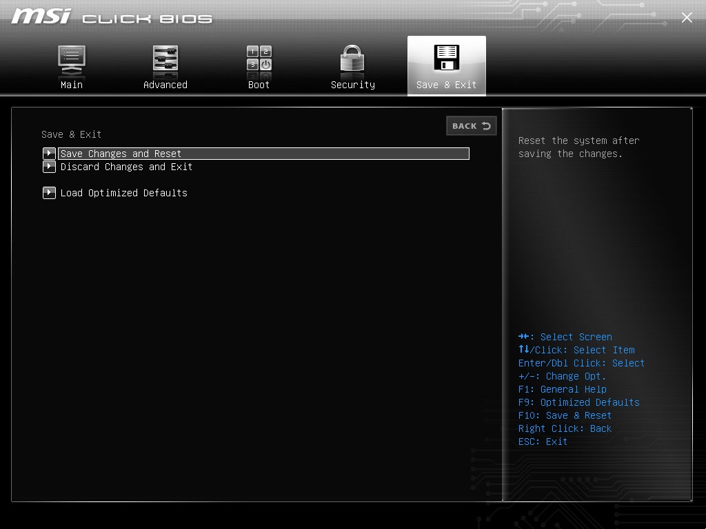 Het laatste scherm is het meest eenvoudige scherm. Hier kunnen instellingen opgeslagen worden maar ook kunnen de standaard instellingen weer ingeladen worden, mocht er toch een probleem zijn met de laptop.