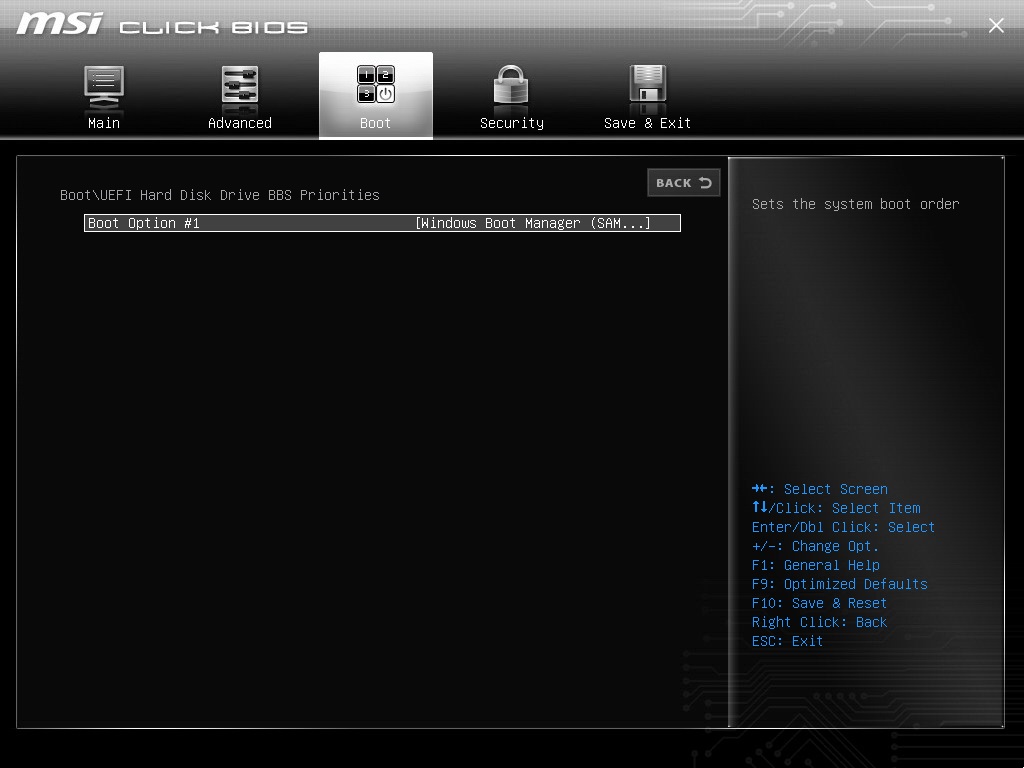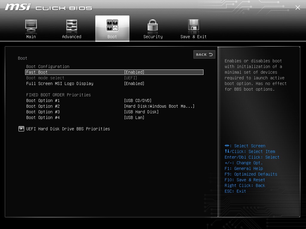 De derde optie bepaalt hoe de laptop opstart. Moet het logo te zien zijn tijdens het opstarten of moet er een standaard tekst getoond worden. Ook is de opstartvolgorde aan te passen. In de UEFI Hard Disk Prorities is te bepalen welke harde schijf er gebruikt moet worden. In dit geval is er maar één optie beschikbaar en is er niets aan te passen. Dit zou met een externe schijf wellicht wel mogelijk zijn.