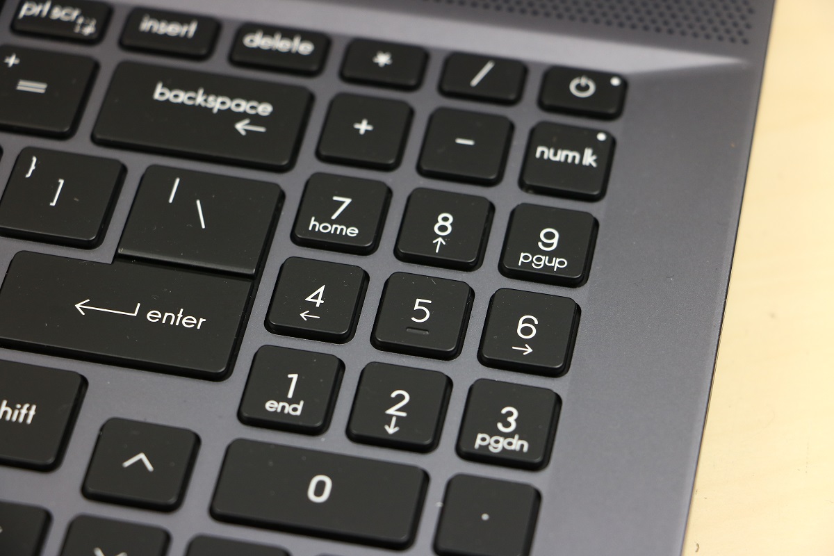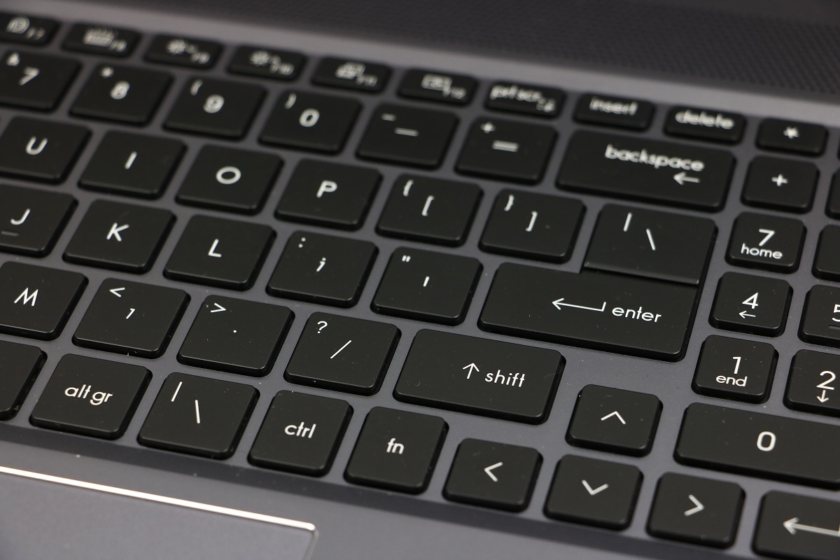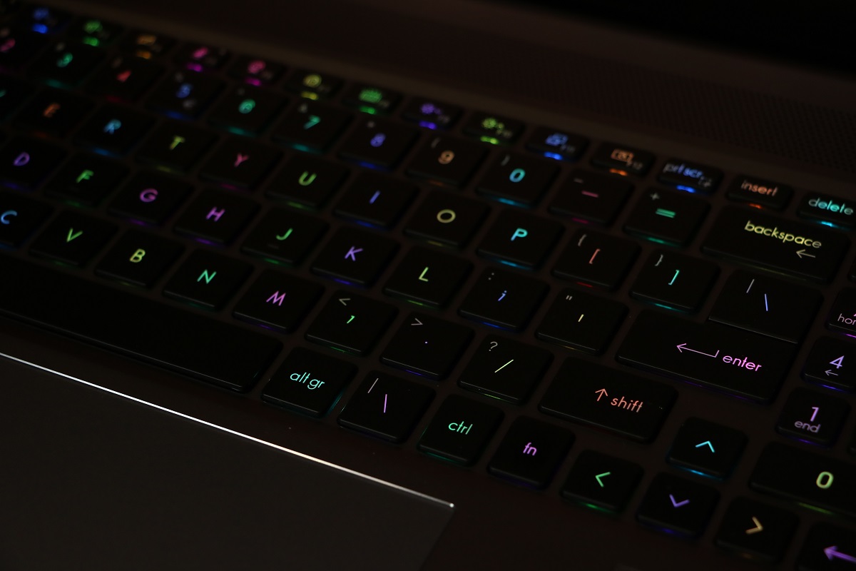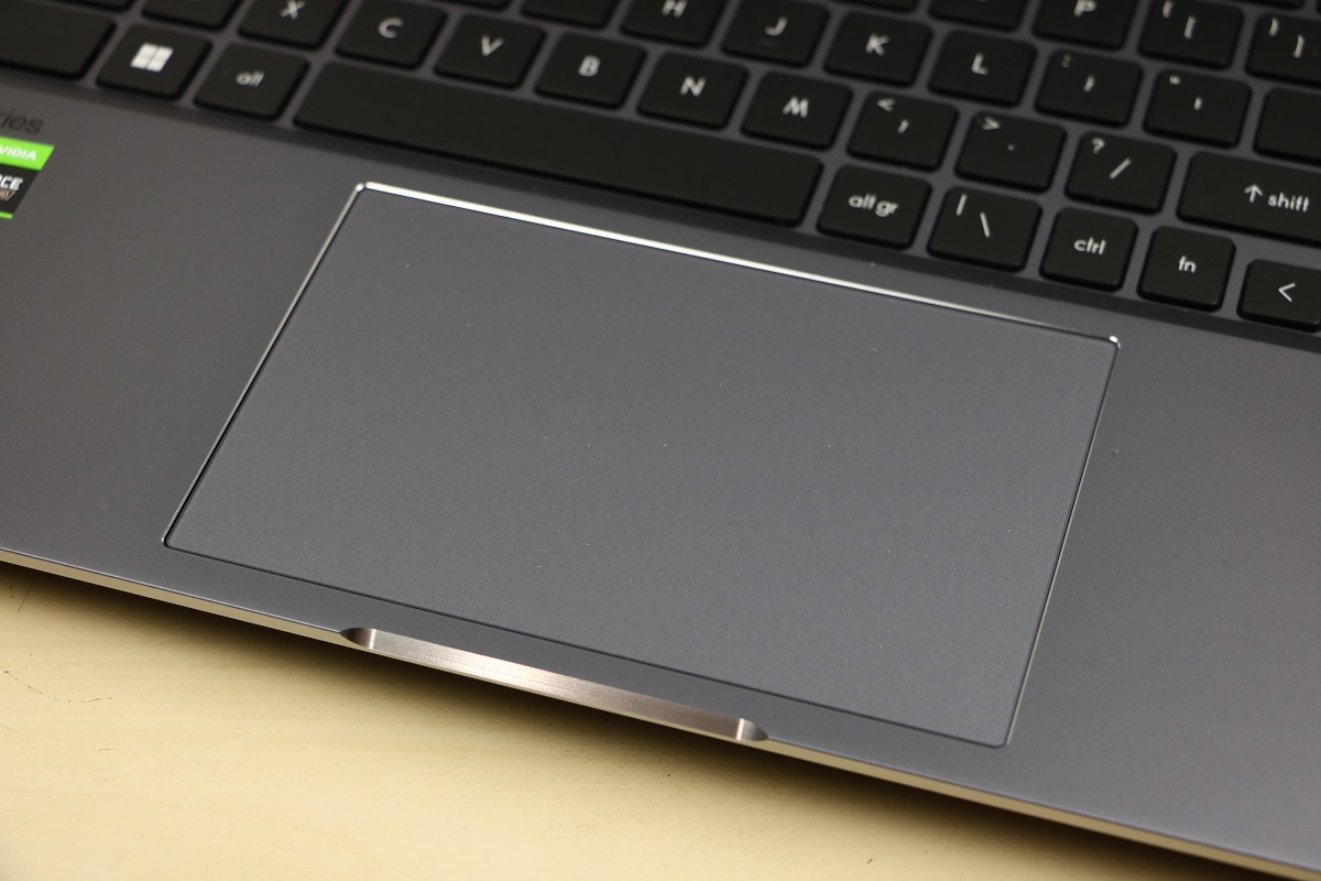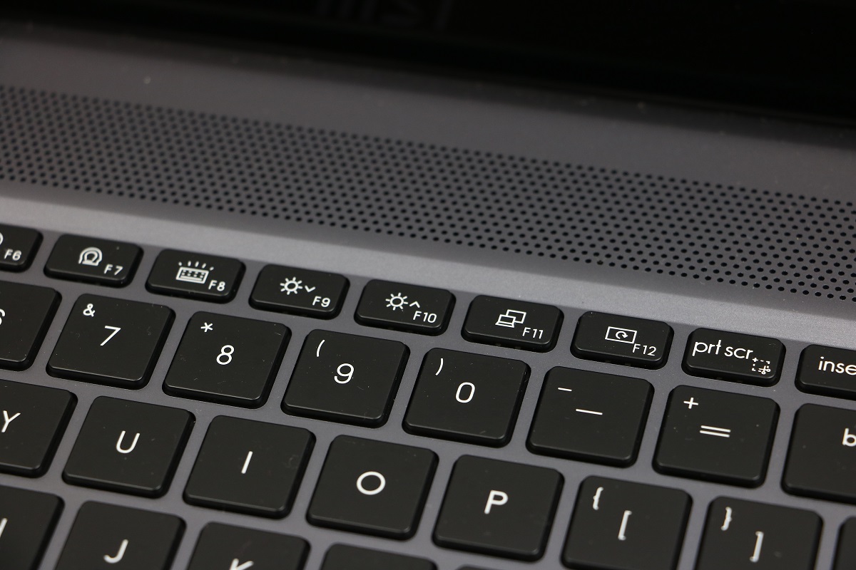 Wat meteen goed te zien is, is het toetsenbord van de laptop. Deze bedekt de helft van het liggende gedeelte. Aan de bovenkant van het bord zijn de functietoetsen te vinden die uitgerust zijn met een extra functie. Zo is het mogelijk om het volume aan te passen, de microfoon of webcam uit te zetten of de verlichting van het toetsenbord aan te passen. Tevens kan de helderheid bijgesteld worden. Links bovenin bij de escape knop is een functie in te schakelen dat de FN knop altijd gebruikt worden. Dat scheelt weer het vasthouden van een knop bij het gebruik van deze knoppen. Aan de rechterkant vinden we een numeriek gedeelte, iets wat niet altijd aanwezig is op een laptop. Wel bij deze Creator aangezien hij niet echt voor Gaming bedoeld is. Het lettertype oogt prettig en compleet niet druk. Alles heeft een logische plek op het bord, al kan het zijn dat het numpad ietwat klein is voor sommige mensen. Onder het toetsenbord is een groot touchpad geplaatst. Hier zijn geen fysieke knoppen te vinden maar het pad is wel in te drukken voor bijvoorbeeld de rechtermuisknop. Ook voor het slepen van bestanden is het nodig het touchpad ingedrukt te houden.