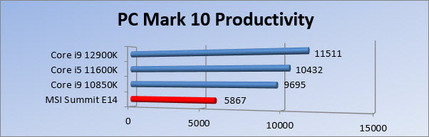 We zien in PC Mark 10 dat de Summit het een beetje moet afleggen tegen de rest. Dit is een benchmark die verschillende taken uitvoert en een gemiddelde laat zien van alle tests. Even verderop zien we ook de reden waarom de score wat lager uitvalt. In de productivity tests zet de Summit een lage score neer. Ga je kijken naar de Essentials dan doet de laptop het zeker een stuk beter. In Kraken zien we dat de i7 het toch redelijk netjes doet.