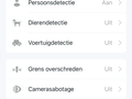 detectie krijg je een overzicht van het beeld dat op dat moment wordt opgenomen. Hieronder kan ook gekozen worden voor welke detectie er moet plaatsvinden. Er kan gekozen worden voor bewegingsdetectie, persoonsdetectie en dierendetectie. Dierendetectie is op dit moment nog gelimiteerd tot enkel honden en katten. In de toekomst komen daar meer dieren bij. Mocht er ooit nog een Bengaalse tijger in je tuin lopen..