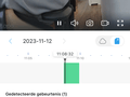 Zodra op een item geklikt wordt, verschijnt er een timeline. Dit is bij mij regelmatig een zeer dun lijntje omdat het opgenomen beeld bij mij vaak van korte duur is. Gelukkig kan er worden ingezoomd zodat een specifieker deel van de video kan worden bekeken.