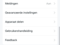 meldingen. Zodra je hierop klikt, verschijnt er een ander menu. Hierin is enkel de melding aan of uit te schuiven. Wat mij betreft had er om die reden geen extra menu geopend hoeven worden, maar kon de schuiver ook gewoon daar staat. Scheelt weer een onnodige klik. Met 'meldingen' wordt het