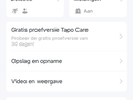 Via dit menu kan worden gekozen voor een gratis 30 dagen proefperiode van Tapo Care. Tapo Care is de onbeperkte online cloudopslag voor alle Tapo apparaten die dit ondersteunen.