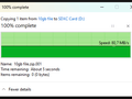 1 bestand van 10GB kopiëren naar de MicroSDXC kaart: