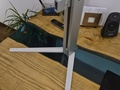 De voet is netjes afgewerkt en geeft niet het gevoel dat er goedkope materialen zijn gebruikt. De onderste uitstekende voeten en bovenin de uitstekende pin voor het ophangen van een headset zijn afgewerkt met een wit plastic met donkere spikkels erin. Dit komt omdat dit voor 35% gerecycled plastic is. Ik weet nog niet zo goed of ik dit wel of niet mooi moet vinden... De naam "Philips" en type aanduiding "Envia" zijn dan wel weer mooi verwerkt in de uiteindes van beide voeten. Aan de onderkant van de voet zitten rubberen voetjes die ervoor zorgen dat de voet niet krast op je bureaublad en stevig op zijn plek blijft staan.