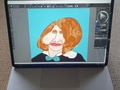 Het touchscreen kan naar twee zijden gekanteld worden. Om te tekenen is de positie waarbij het toetsenbord áchter het scherm zit de meest prettige. Alleen is dat niet stabiel. Staat het schuine scherm óp het toetsenbord, is het stabieler maar steekt de onderkant van de laptop er onder uit:( En lekker als een tekenblok in de hand houden is door grootte en gewicht niet aantrekkelijk.