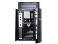 De toegang tot de 120mm intake fans makkelijk ook als er al spullen zijn ingebouwd. HDD kan buiten de kast worden gemonteerd. En als de goede volgorde wordt aangehouden, is de kast fijn om mee te werken en om in te bouwen.