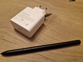 Onder de laptop zit weer een klein vak met daarin de USB-C kabel voor de adapter en daar naast een apart vak voor de pen.