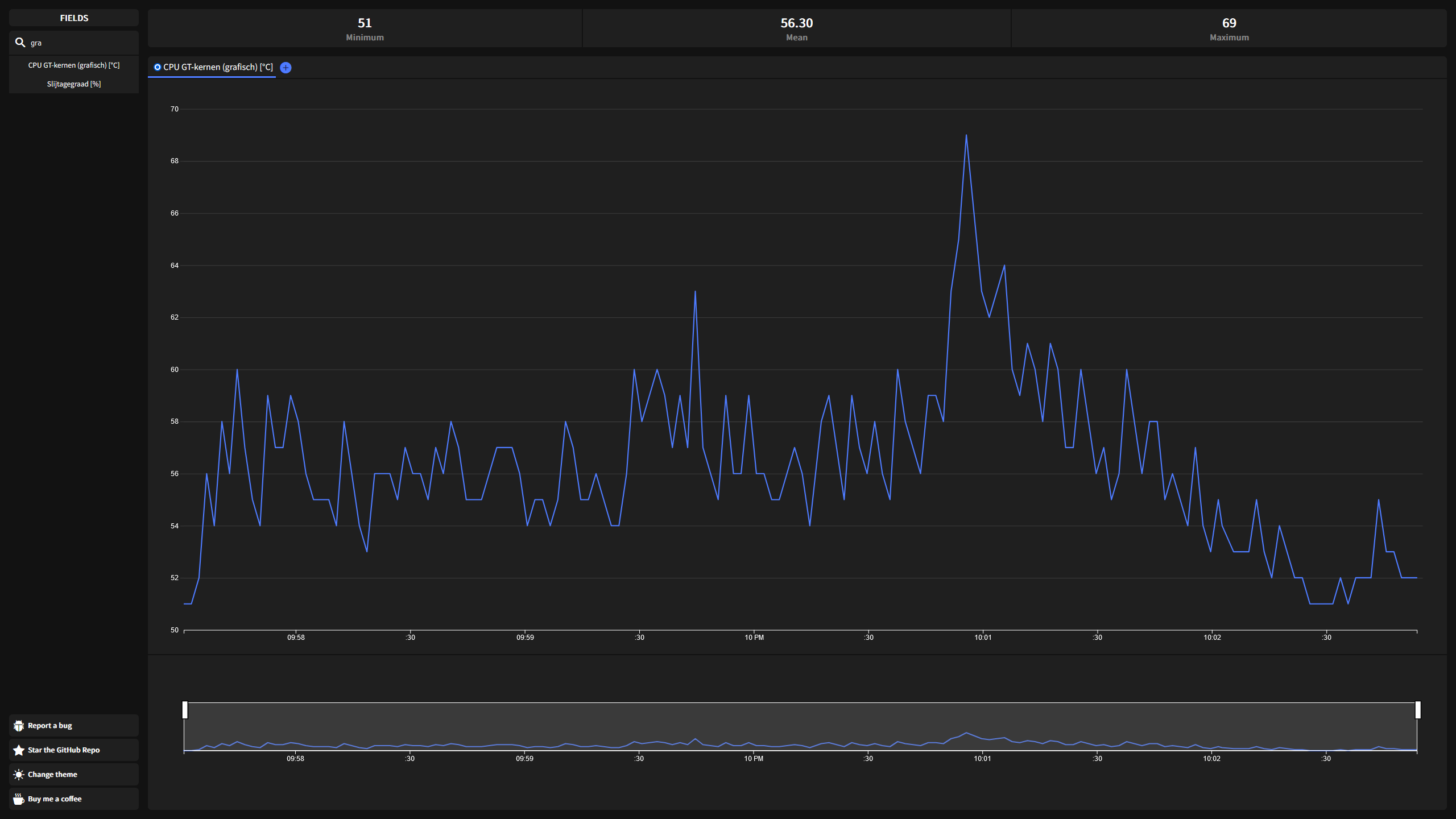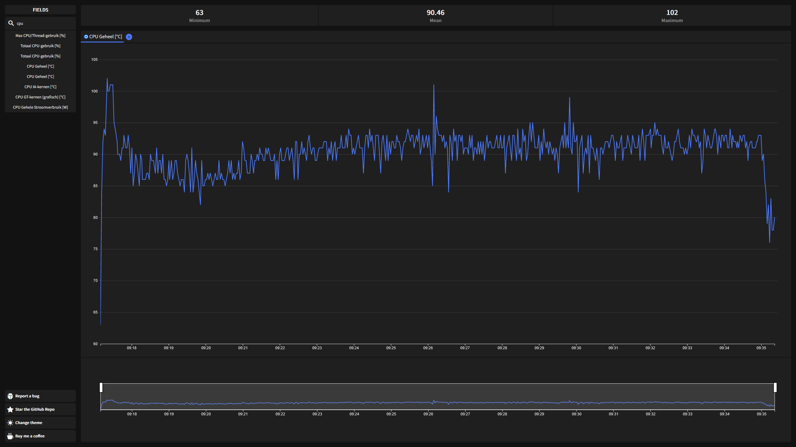 Tijdens het draaien van de benchmarks heb ik HWinfo64 op de achtergrond mee laten lopen zodat ik jullie kan voorzien van een paar grafiekjes: