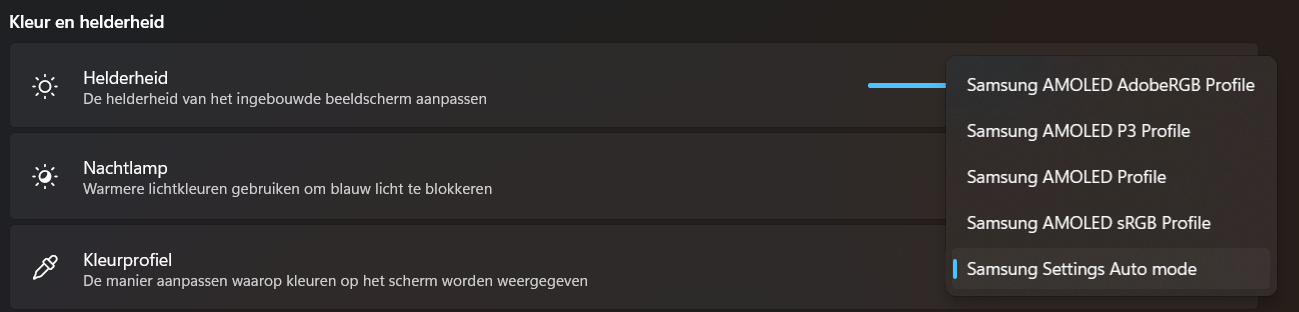 Maak je geen gebruik van HDR, dan levert Samsung meerdere kleurprofielen mee: