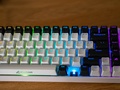 De dikte en kwaliteit van de verf van de keycaps zijn oké, maar het zal nooit beter zijn dan PBT- of Double-Shot-keycaps. In ieder geval zijn het grote, perfect leesbare tekens, die worden verlicht door een krachtig RGB-systeem.