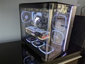 review van de Montech King 95 Pro een stress-test gedraaid van ruim tien minuten, waar er Furmark en Cinebench tegelijkertijd werd gedraaid, wat met een i9 14900K en 7800XT uitkomt op een totaalgebruik van 550-600W. Aan het einde van de test kan ik individuele blades van de 135mm ventilator op de Titan Gold nog prima zien draaien met het blote oog. HWMonitor pakt helaas geen RPM-signaal op, maar het zal sowieso minder dan 500 RPM zijn. Volgens Cybenetics hebben we het op dit niveau over een geluidsproductie van 10-15 dBA gaat: dat is dus bijna niks.
