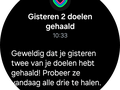 Wat daarbij - voor mij althans - wel helpt, zijn de motiverende teksten die de notificaties op het horloge tonen. Vreemd genoeg werkt het voor mij echt als mijn horloge tegen me zegt dat ik goed bezig ben.