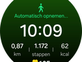 Het horloge kan detecteren wanneer je bepaalde 'trainingen' uitvoert. Als je bijvoorbeeld een stukje wandelt of fietst, zal hij dat automatisch registreren en (als je daarvoor toestemming geeft) je locatie bijhouden. Dit werkt goed, zelfs ietsje beter (sneller en accurater) dan op de Watch4 Classic.
