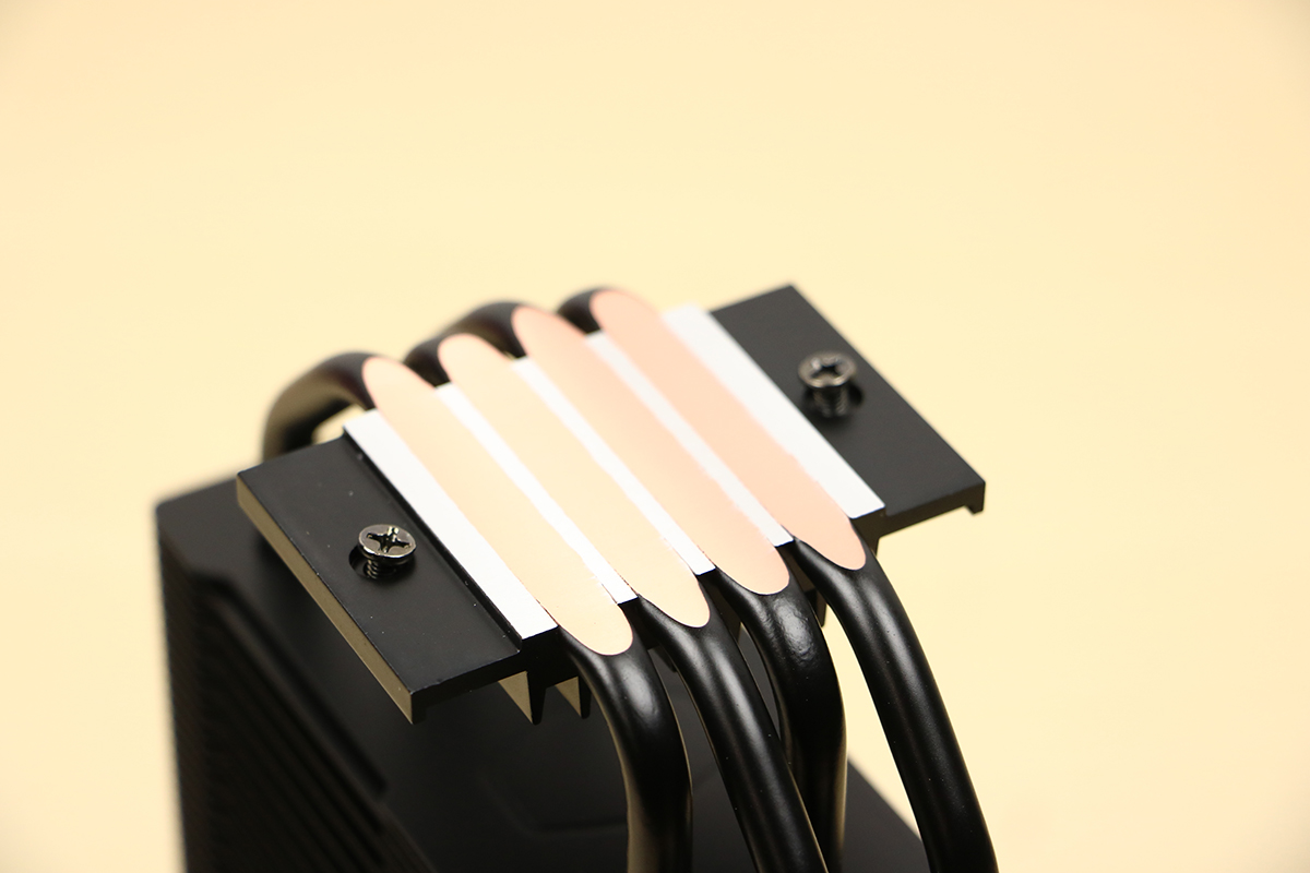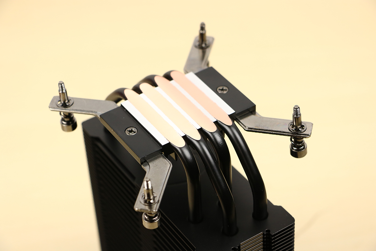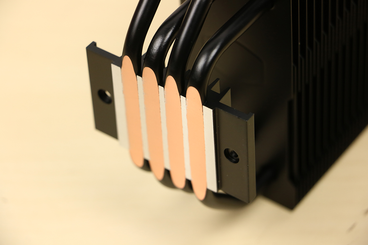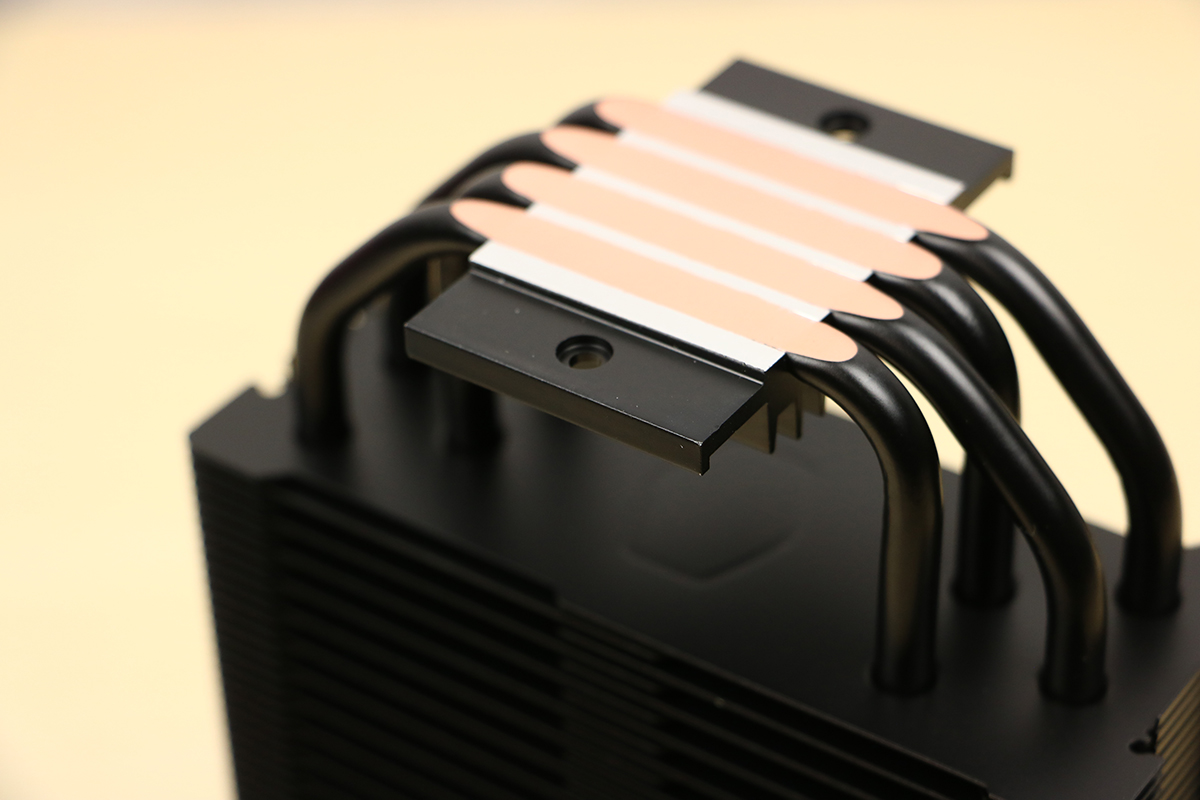 Om de warmte van de processor zo goed en zo snel mogelijk af te voeren is de koeler voorzien van vier heatpipes die Cooler Master de Jet-Black heat pipes noemt. Deze zijn, zoals de naam doet vermoeden, compleet in het zwart uitgevoerd en lopen door de hele koeler heen. Zo kan de warmte afgegeven worden aan de koelvinnen die vervolgens hun warmte kwijt raken door de ventilator die op de koeler zit. Dit ziet er bovendien ook best netjes uit, beter dan een aluminium kleur door een zwarte koeler.