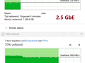Alle tests gaven hetzelfde resultaat. In het begin werd met de volledige 10 gigabit naar de M.2 schijf of schijven geschreven. Na ongeveer 20-30 seconden zakte deze snelheid in van 1.09 GB/s naar zo'n 800 MB/s. Dit heeft denk ik te maken met het cache geheugen van mijn SSD's en niet zozeer met de processor of de 10 gigabit netwerkadapter van de NAS. Hieronder een samengevoegd screenshot van twee tests. Het bovenste testresultaat was met de externe bottleneck een 2.5 gigabit netwerkpoort van mijn eigen router. Bij de onderste test was er geen externe bottleneck van 2.5 GbE. Bij het onderste testresultaat en kon de volledige 10 gigabit netwerksnelheid worden gesatureerd. Dit is in ook duidelijk te zien als je kijkt naar de overdrachtssnelheid. In het begin dus zo'n 20 seconden 1.09 GB/s, na ongeveer 20 seconden gemiddeld 900 MB/s. Als je dus een video of ander bestand van 1 gigabyte of kleiner naar de NAS kopieert, dan gebeurt dit dus vrijwel ogenblikkelijk.