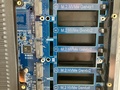Als het klepje eraf is, zie je de zes M.2 sloten. Deze zijn genummerd en het is aan te raden de SSD's ook op volgorde te installeren. Niet alleen zodat het systeem gemakkelijker de SSD's zal herkennen, maar ook omdat de de zes M.2 sloten (PCIe sloten) van snelheid verschillen. Zo heeft het eerste slot een PCIe 4.0 x4 interface, de volgende drie PCIe 4.0 x2 en de laatste twee daarna PCIe 4.0 x1. Het is dus slim om je snelste SSD's in het eerste slot te doen om zo maximaal gebruik te kunnen maken van de snelheid. Ook kan het dan slim zijn om volume 1 te maken van de eerste SSD zodat je zeker weet dat je naar de eerste SSD weg schrijft en dus enkel gebruikmaakt van die PCIe 4.0 x4 snelheid.