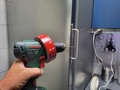 7. Goed aanwrijven en dan met een fijn metaal boortje precies in middelste van schroefgat inboren, boven en onder.