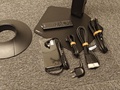 Unboxing is pijnloos. De voet zit zo in elkaar, de boekjes en adapter en stroomkabels zijn prima. De meegeleverde DisplayPort-kabel is van matige kwaliteit (detectie ging mis op mijn 2070 Super). De afstandsbediening is fijn en laadt op met zonlicht.
