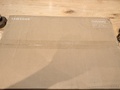 De monitor werd geleverd in een compacte kartonnen doos. Op de doos vinden we het logo van FSC Mix Packaging, wat betekent dat de verpakking deels uit gerecycled materiaal bestaat, wat mooi is. Er staat ook een disclaimer die vertelt dat je een Samsung account nodig hebt om de monitor ten volle te gebruiken. Netjes van Samsung zodat je dit niet na aankoop moet ontdekken. Een energielabel mag ook niet ontbreken. De F-rating lijkt niet zo goed, maar daarover later meer.