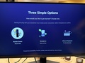 - Het tweede scherm laat je kiezen waarmee je de setup wil doorlopen. Je krijgt keuze tussen de afstandsbediening, een smartphone of muis en keyboard. Als je muis en keyboard kiest, probeert de monitor met Bluetooth verbinding te maken. In mijn geval bleek dit niet te werken, mogelijk doordat dit niet werkt met het interne toetsenbord van de laptop. In ieder geval kon er geen verbinding gemaakt worden. Omdat ik mijn smartphone vrij wilde houden om foto’s te maken, koos ik voor de afstandsbediening.