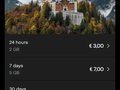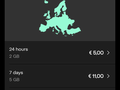 Voor de initiële opzet heb je de Simwallet app van Odio nodig. Na het downloaden van 35 MB en de app opent krijg je kort een uitleg wat je met de app kan doen. Op het hoofdscherm heb je 2 vlakken “New eSIM” en “How to activate”. Wat meteen opvalt is dat je nerggens hoeft te registreren. Omdat ik in een ski lift zat heb ik meteen een esim laten maken. Je krijgt 3 banners te zien met "Netherlands", “Countries” en “Regions”. Bij countries op “Ger” gezocht en Germany aangetikt. Je krijgt een overzicht van de abonnementen en bedragen. Ik koos in eerste instantie voor 24 uur voor 3 euro. Hiervoor krijg je 2 GB aan data. Je krijgt een overzicht met de voorwaarden en onderaan kun je op continue drukken. Je komt in een betaaloverzicht. Na afronden van de betaling klik je op complete order. Nu wordt de betaling gevalideerd en ga je door naar een volgend scherm.