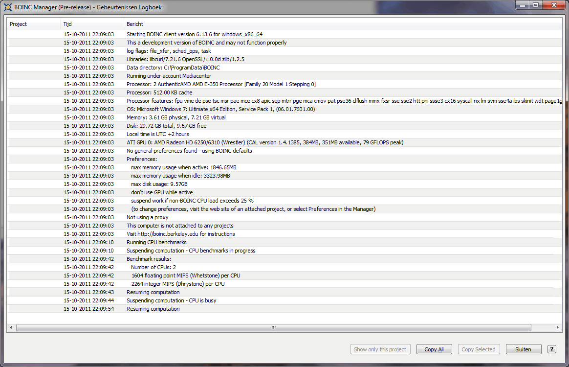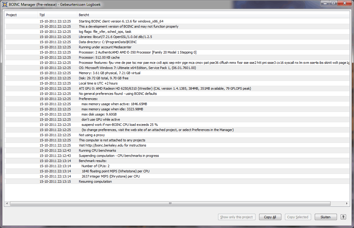 Omdat er hier natuurlijk ook wat DPC-ers rondhangen, hierbij de prestaties voor gebruik van BOINC: