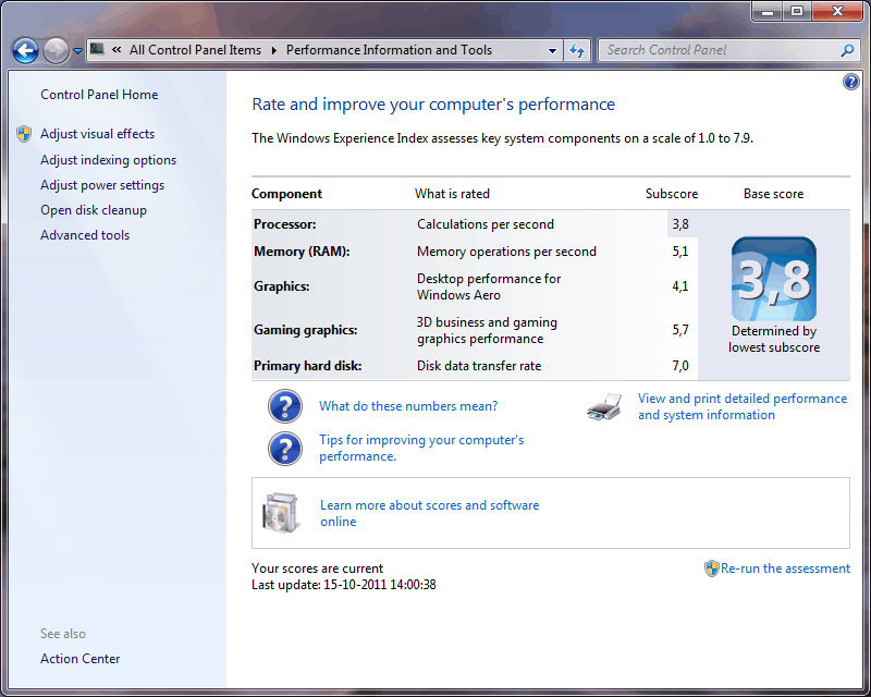 Windows 7 performance index