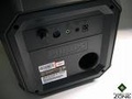 De subwoofer:De subwoofer is achthoekig met een × aan de voorkant waar philips op staat het keer teken is doorzichtig.Achterop zitten alle aansluitingen en de regelaar voor de bas.