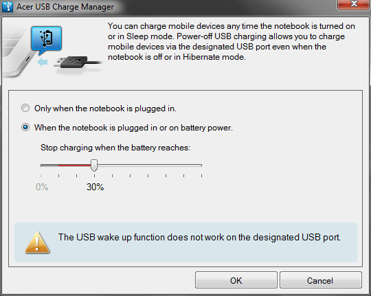 Er is ook een wat software meegeleverd van Acer om een USB poort in hibernate/sleep mode actief te laten zodat je bijv. je mobiele telefoon kan opladen zonder het hele systeem aan te hebben staan. Voor mij is dit een plusje want mijn asus liet ik geregeld een nachtje aan staan als ik geen losse lader voor handen had.