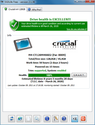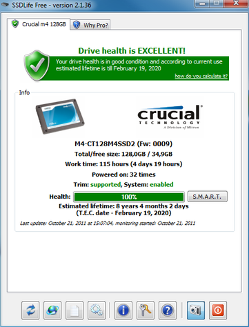Nu weet ik zelf niet hoe betrouwbaar deze tool is maar erg apart vind ik het toch wel dat de Estimated lifetime ineens van 8 jaar, 5 maanden en 20 dagen is veranderd naar 8 jaar, 4 maanden en 2 dagen en dat allemaal binnen 2 weken.