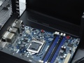 Een nadeel wat van tevoren al bekend was, is de nogal onnozele plaatsing van harde schijven. De kast heeft een afschroefbaar paneel waar schijven met te onderkant tegenaan worden geschroefd. Dit zorgt er niet alleen voor dat er maar plaats is voor een paar schijven, het neemt ook nog eens de ruimte weg voor een grote videokaart.